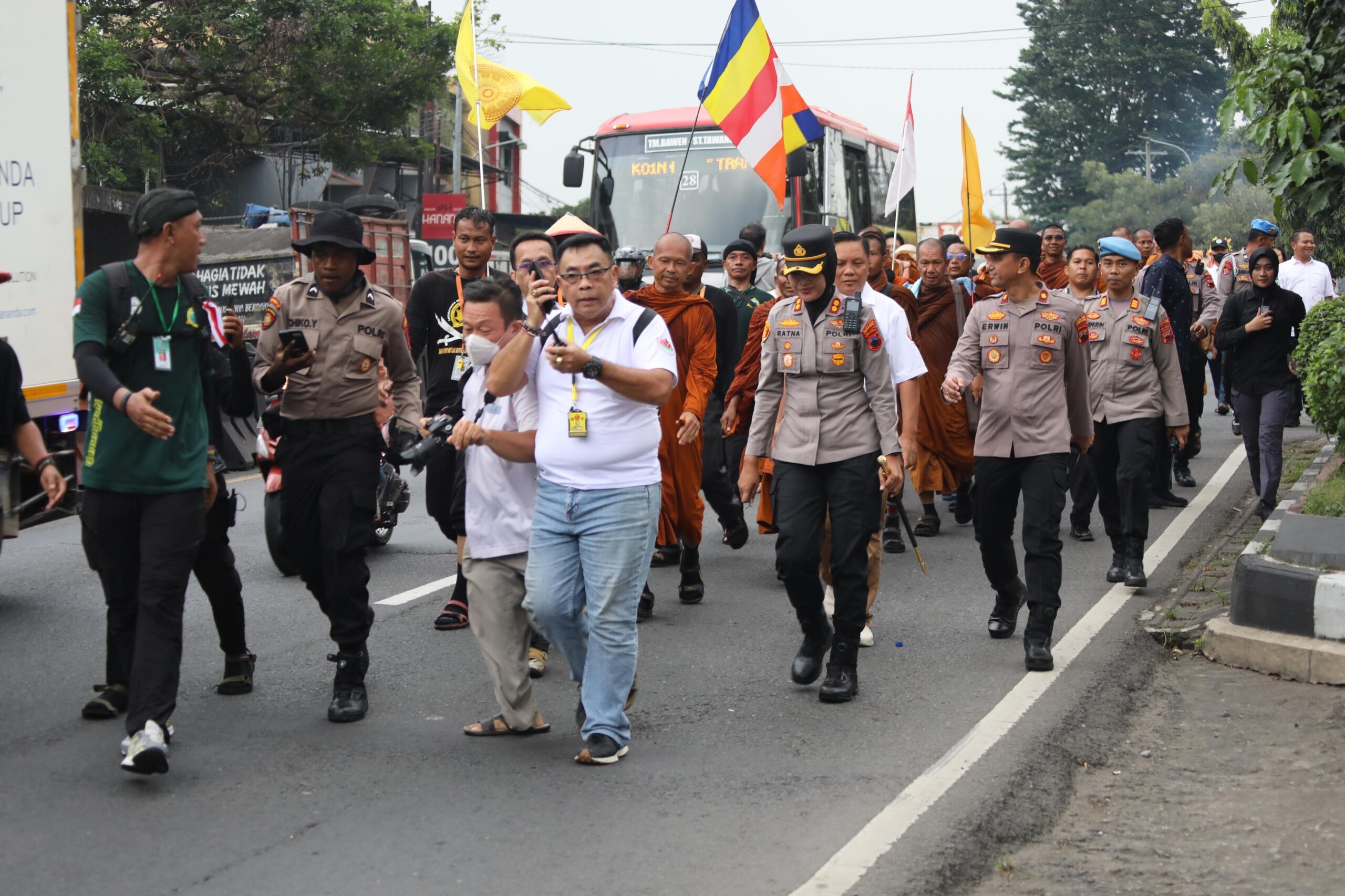 Polres Semarang_Polda Jateng – Rombongan 36 Bhiksu dari Thailand, Malaysia hingga Indonesia yang memasuki wilayah Kab. Semarang, mendapatkan pengamanan langsung dari Polres Semarang.