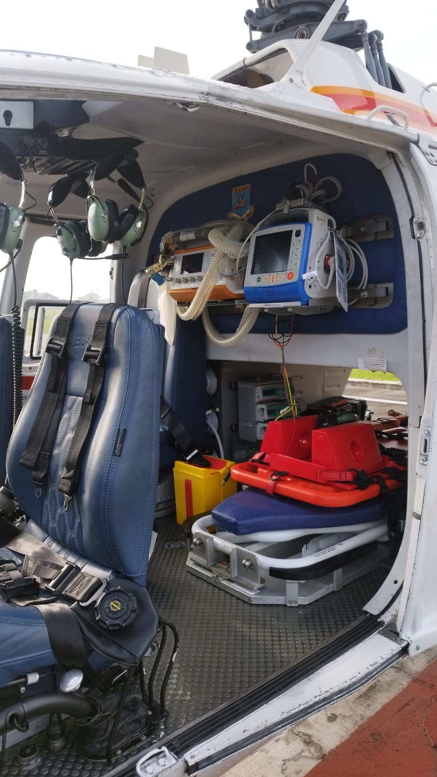 Untuk kelengkapan Ambulans Udara terdiri dari 1 Ventilator; 3 Tabung O²; Monitor dan Devibrilator; Syring pump; infus pump; suction pump; stretcher portable; dna Oksigen Portable.