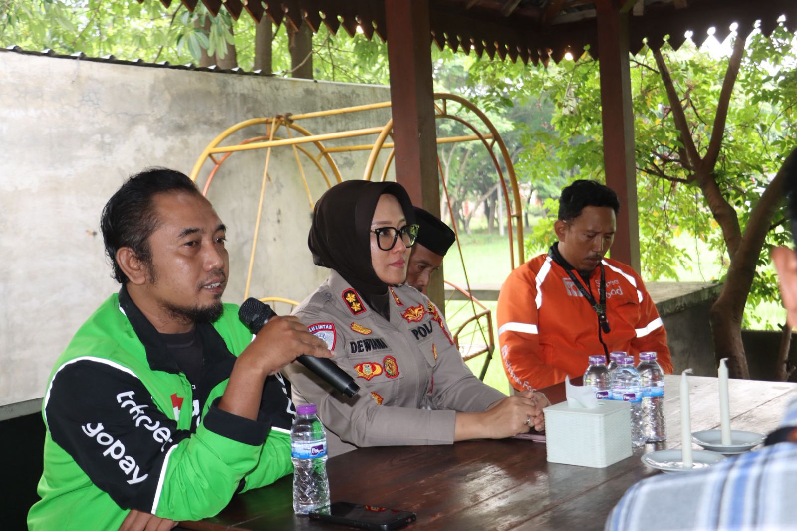 Koordinator Gojek Sragen, Cahya Fadjar Christian, menyampaikan rasa syukur atas kepedulian Polres.
