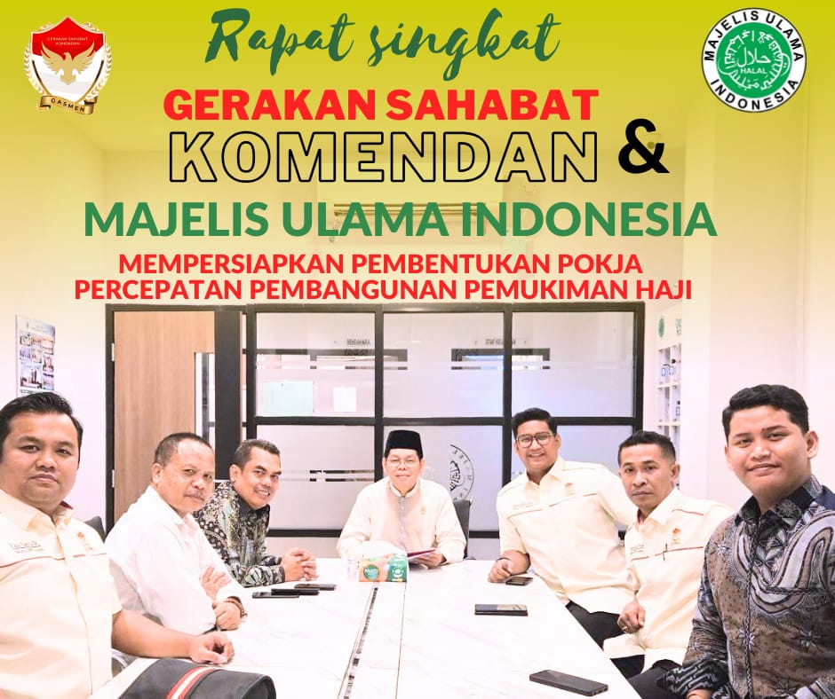 Jakarta – Upaya mewujudkan Kampung haji Indonesia di Makkah oleh Presiden Prabowo mendapat dorongan kuat. Gerakan Sahabat Komendan(GASMEN) bersama Majelis Ulama Indonesia (MUI) berkomitmen membentuk Kelompok Kerja (Pokja) guna mempercepat realisasi proyek strategis ini. Langkah ini sejalan dengan keinginan dan ide cemerlang Presiden Prabowo Subianto untuk memastikan jemaah haji Indonesia memiliki pemukiman yang representatif, berkualitas dan mandiri di tanah suci.