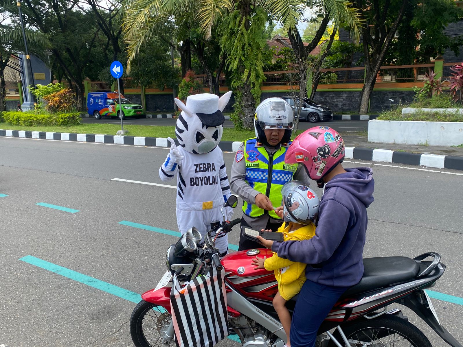 Petugas menghentikan pengendara tersebut bukan untuk menindak, melainkan memberikan edukasi mengenai keselamatan berkendara, khususnya ketika membawa anak kecil. Petugas menjelaskan pentingnya penggunaan helm SNI untuk pengendara dan anak, posisi duduk yang aman, serta risiko yang dapat terjadi saat balita dibonceng tanpa perlindungan.