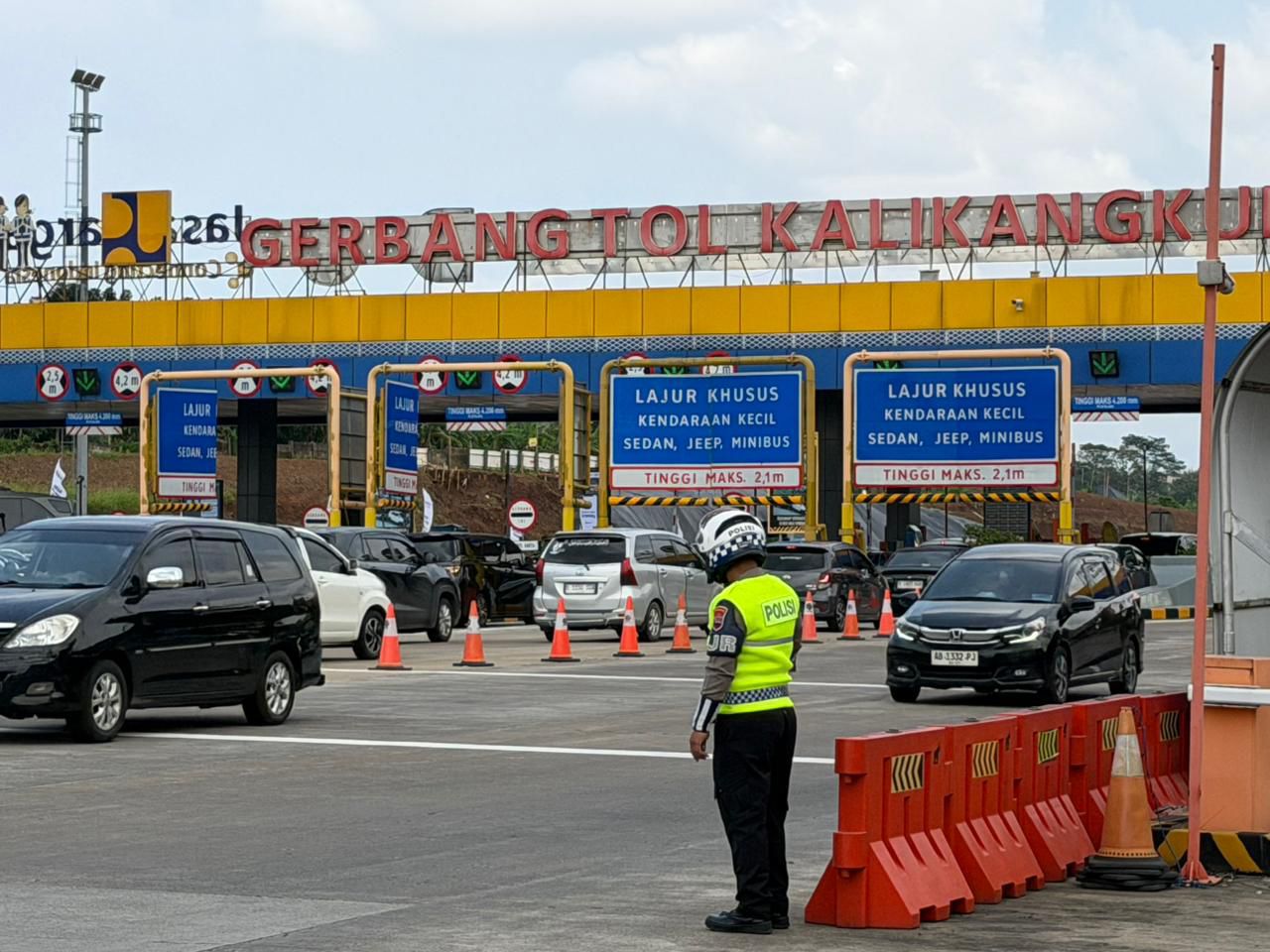 “Polda Jawa Tengah terus memonitor perkembangan arus lalu lintas di sejumlah titik pintu masuk utama, khususnya di Gerbang Tol Kalikangkung yang menjadi jalur utama kendaraan dari arah barat menuju wilayah Jawa Tengah. Kami juga menyiagakan personel di lapangan untuk memastikan arus lalu lintas tetap berjalan aman dan lancar,” ujar Kombes Pol. Artanto. Minggu (15/3).