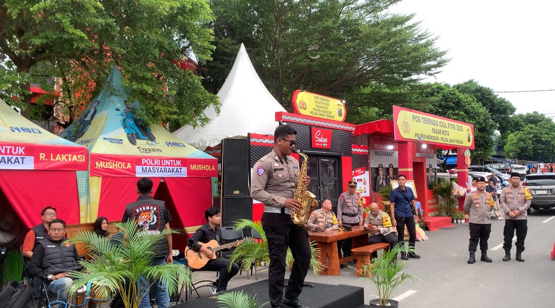 Dalam kesempatan itu, jajaran Polres Wonogiri menggelar live music untuk menghibur pemudik dan masyarakat yang sedang melakukan aktifitas ngabuburit.