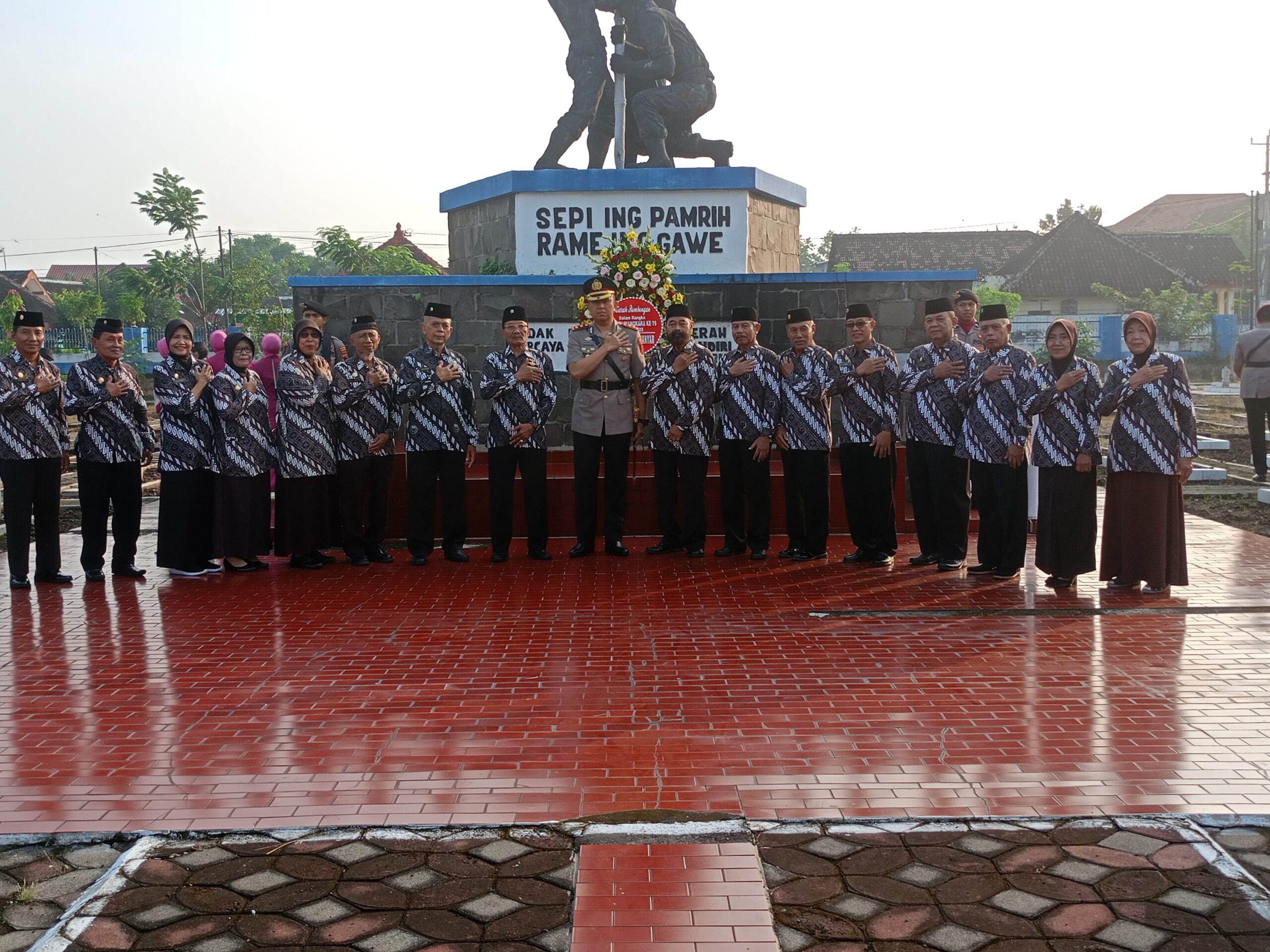 Upacara dipimpin langsung oleh Kapolres Karanganyar, AKBP Dr. Hadi Kristanto, S.I.K., M.M., selaku pimpinan rombongan, dan diikuti oleh Wakapolres, para pejabat utama, Kapolsek jajaran, anggota Bhayangkari, serta personel Polres Karanganyar dari berbagai satuan fungsi.