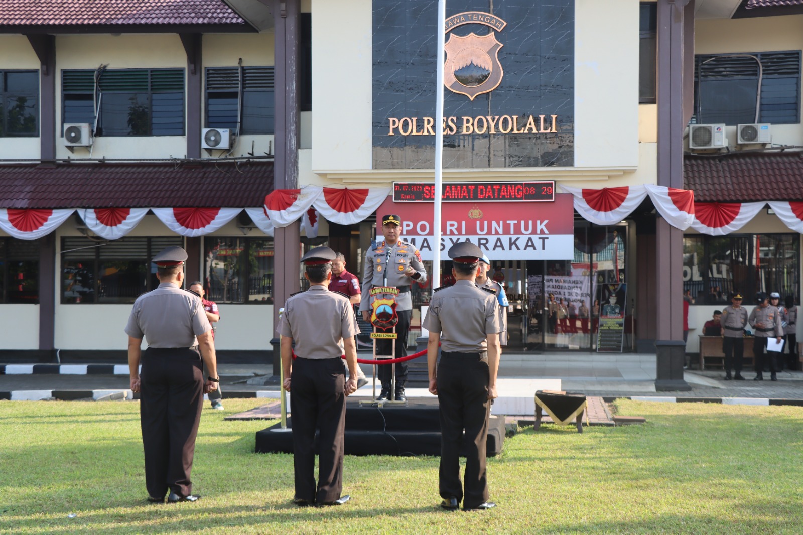 Boyolali — Suasana khidmat menyelimuti halaman Mapolres Boyolali pada Kamis pagi (31/7/2025), saat digelarnya Upacara Kenaikan Pangkat Pengabdian Polri periode 1 Agustus 2025. Bertindak sebagai Inspektur Upacara, Kapolres Boyolali AKBP Rosyid Hartanto, memimpin langsung jalannya prosesi yang menjadi simbol penghormatan atas pengabdian luar biasa para personel Polri.
