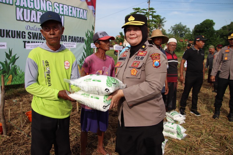 Dalam kesempatan tersebut Kapolres Sumenep memberikan bantuan pupuk jenis Urea prill dan Phonska plus kepada kelompok tani.