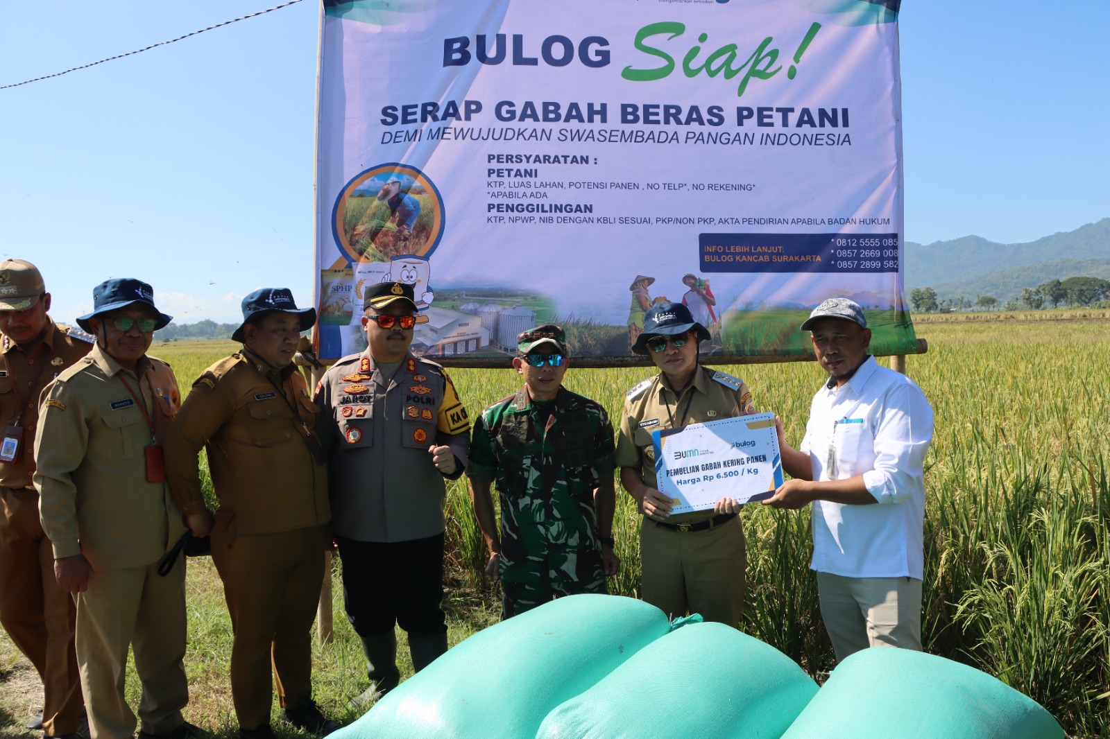 Kapolres Wonogiri AKBP Jarot Sungkowo, S.H., S.I.K., melalui Kasi Humas AKP Anom Prabowo, S.H., M.H., menyampaikan bahwa pihaknya mengapresiasi kegiatan ini dan siap mengawal proses distribusi hasil panen padi, tujuannya agar tidak ada permainan harga yang merugikan petani.