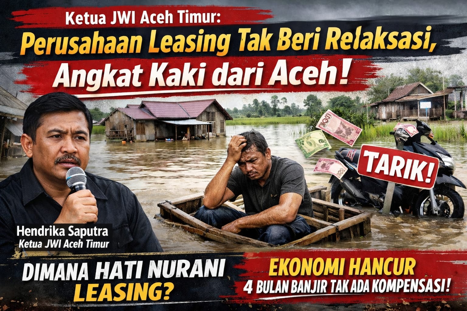 Aceh Timur ( DERAP KEADILAN.COM ) – Ketua Jajaran Wartawan Indonesia (JWI) Aceh Timur, Hendrika Saputra A.Md melontarkan kritik keras terhadap sejumlah perusahaan leasing yang dinilai tidak memiliki kepedulian terhadap nasabah yang terdampak banjir di Aceh.