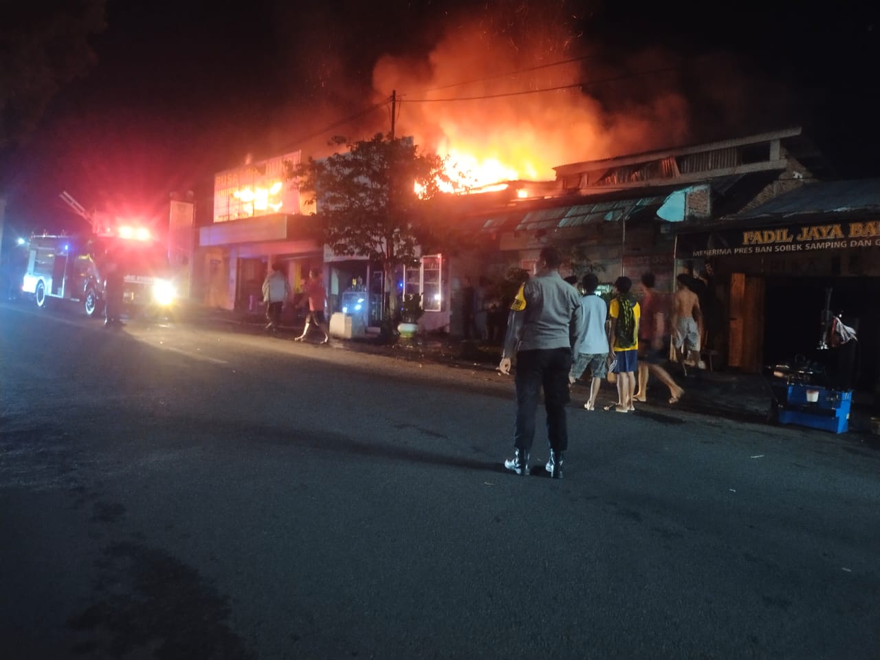 “Mengingat sebagian besar ruko terbuat dari kayu, sehingga api cepat menjalar ke bagian atap ruko dan membakar 2 ruko milik korban.” Pungkas Kapolsek.