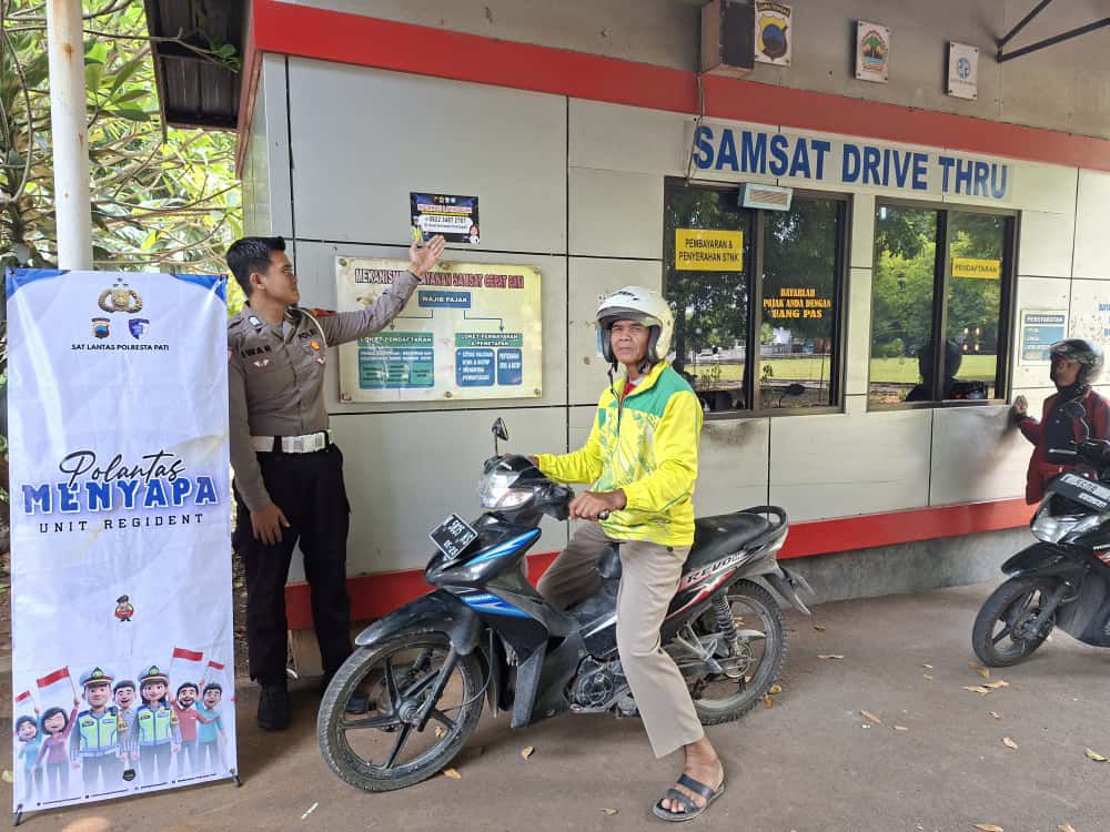 Pati – Program Polantas Menyapa menjadi cara Polantas untuk pendekatan secara humanis dengan masyarakat guna mengedukasi Cara bayar pajak motor tahunan yang bisa dilakukan dengan berbagai macam metode. Salah satunya, bayar pajak motor melalui layanan Samsat Drive Thru. Cara bayar pajak motor di Samsat Drive Thru memang lebih mudah dan cepat. Wajib pajak tidak perlu repot antre panjang ketika ingin membayar kewajiban pajak kendaraan, Rabu 29 Oktober 2025.