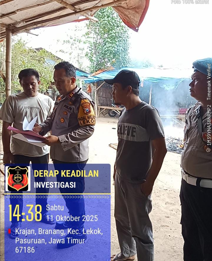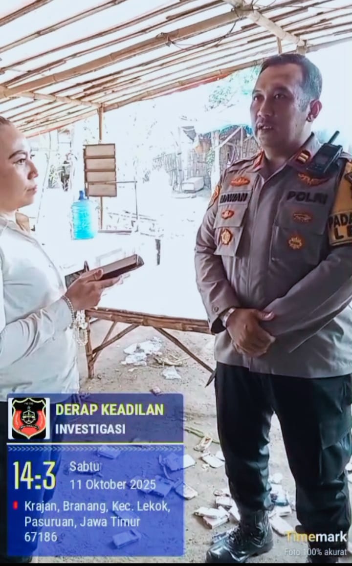 Pasuruan // Derap Keadilan // Menindaklanjuti laporan pengaduan masyarakat (Dumas) , Polresta Pasuruan, melalui Polsek Lekok bergerak cepat (gercep) mendatangi lokasi, yang ditengarai adanya perjudian sabung ayam di Desa Branang – Balung Anyar , Kecamatan Lekok , Kab Pasuruan – Jawa Timur. Sabtu (11/10/2025)