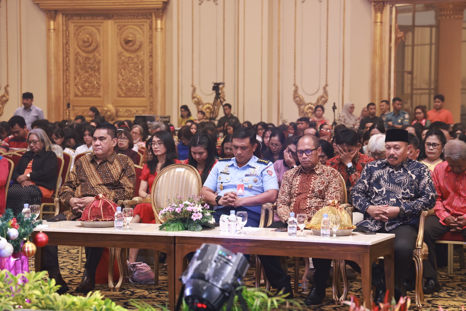 Perayaan yang mengusung tema “Marilah sekarang kita pergi ke Betlehem” ini dipimpin oleh Ketua Badan Kerjasama Gereja-Gereja (BKSG) Pdt. Adrie Massie serta dihadiri oleh sejumlah pejabat Forkopimda, diantaranya Sekretaris Daerah Prov Sulsel Drs. H. Jufri Rahman, M.Si. yang mewakili Pj Gubernur Sulsel Prof. Dr. Ir. Fajry Jufry, M.Si., Ketua DPRD Prov Sulsel drg. Andi Rachmatika Dewi, dan Ka Kanwil Kemenag Sulsel Dr. Ali Yafid, S.Ag., M.Pd.I.