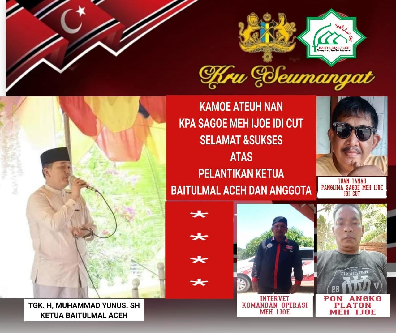 Nyakli Maop dan KPA Sagoe Meh Ijoe Ucapkan Selamat atas Pelantikan Tgk. Muhammad Yunus sebagai Ketua Baitul Mal Aceh