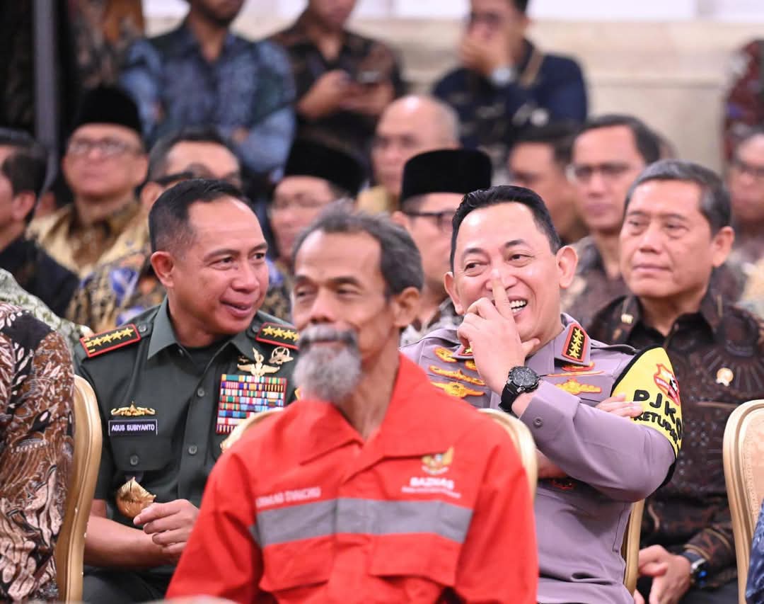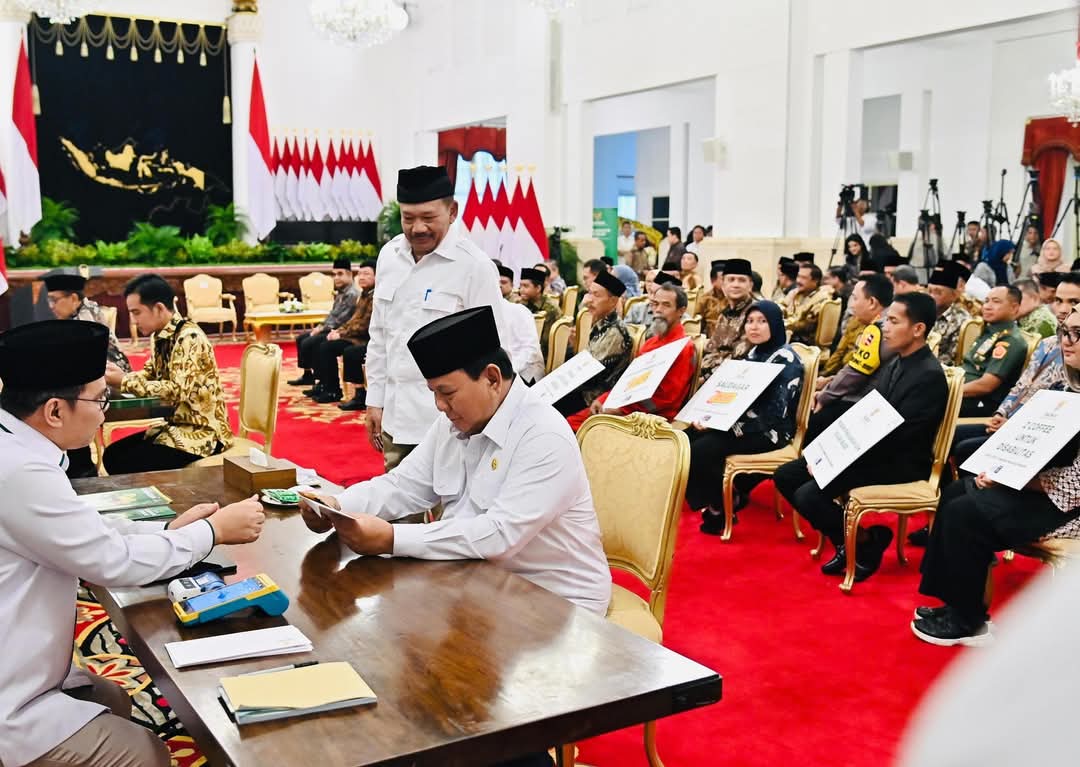 Jakarta Pusat – (Puspen TNI). Panglima TNI Jenderal TNI Agus Subiyanto bersama Kasad, Kasal dan Kasau mendampingi Presiden Republik Indonesia Prabowo Subianto dalam penyerahan zakat secara simbolis kepada Badan Amil Zakat Nasional (BAZNAS) di Istana Negara, Jakarta Pusat, Kamis (27/3/2025).