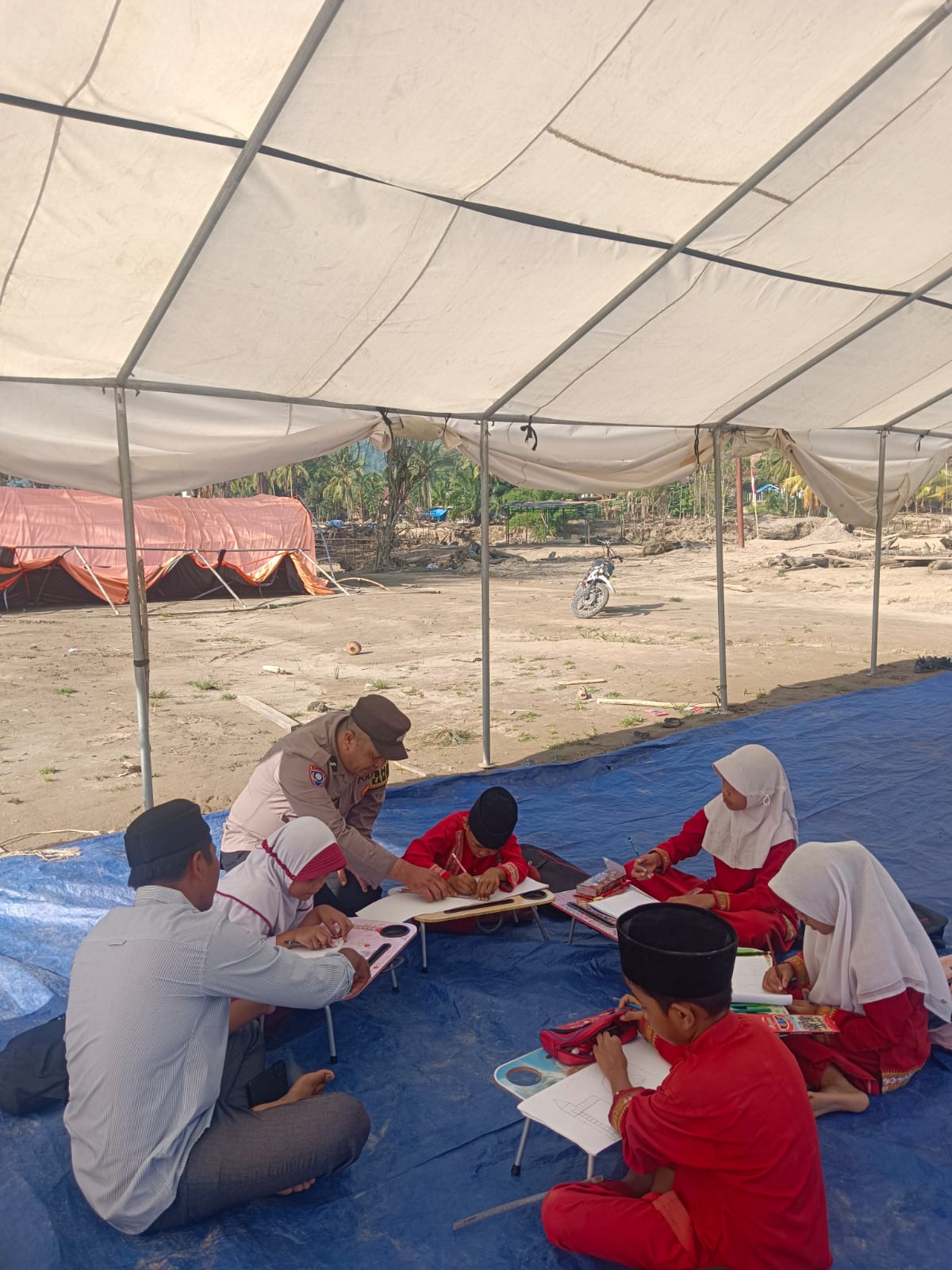 Selain itu, kepedulian juga ditunjukkan terhadap dunia pendidikan. Personel Polsek Linge menyambangi siswa SD Negeri 10 Linge Takengon yang saat ini melaksanakan kegiatan belajar mengajar di bawah tenda darurat. Dalam kesempatan itu, anggota memberikan motivasi dan semangat kepada para siswa agar tetap giat belajar meskipun dalam kondisi terbatas.