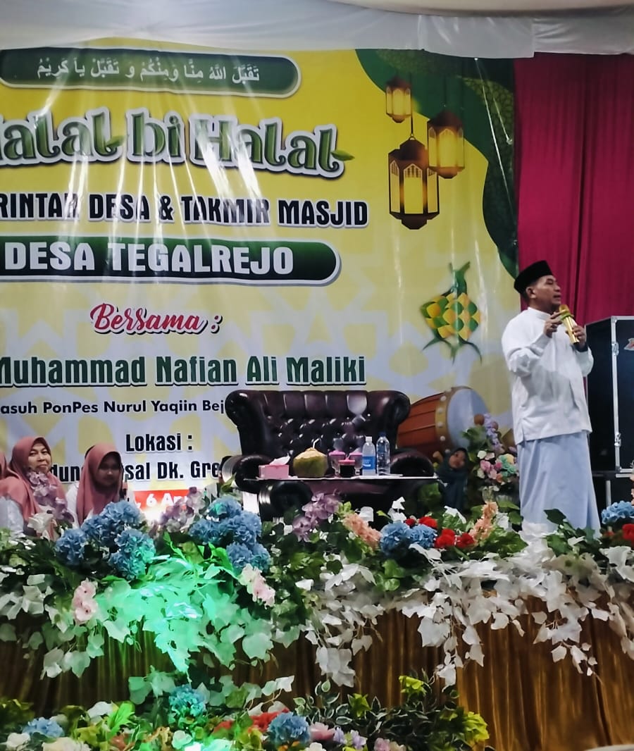 Tegalrejo, Sragen – Dalam rangka Halal Bihalal Dan Silaturahmi Pemerintah Desa Tegalrejo mengadakan pengajian akbar dan kolaborasi sholawat yang diikuti oleh majelis sholawat Desa Tegalrejo. Acara yang menampilkan talenta talenta lokal dari Desa Tegalrejo, Hal ini bertujuan selain silaturahmi pemerintahan desa dengan penduduk desa, juga untuk mempromosikan majelis sholawat yang tidak kalah bagusnya dengan majelis-majelis sholawat di tingkat kabupaten. Selain itu pengajian akbar juga Mengundang penceramah dari Kabupaten Karanganyar yaitu KH. Muhammad Nafian Ali Maliki (Pengasuh Ponpes Nurul Yaqiin) yang sudah sangat terkenal di Kabupaten Karanganyar .