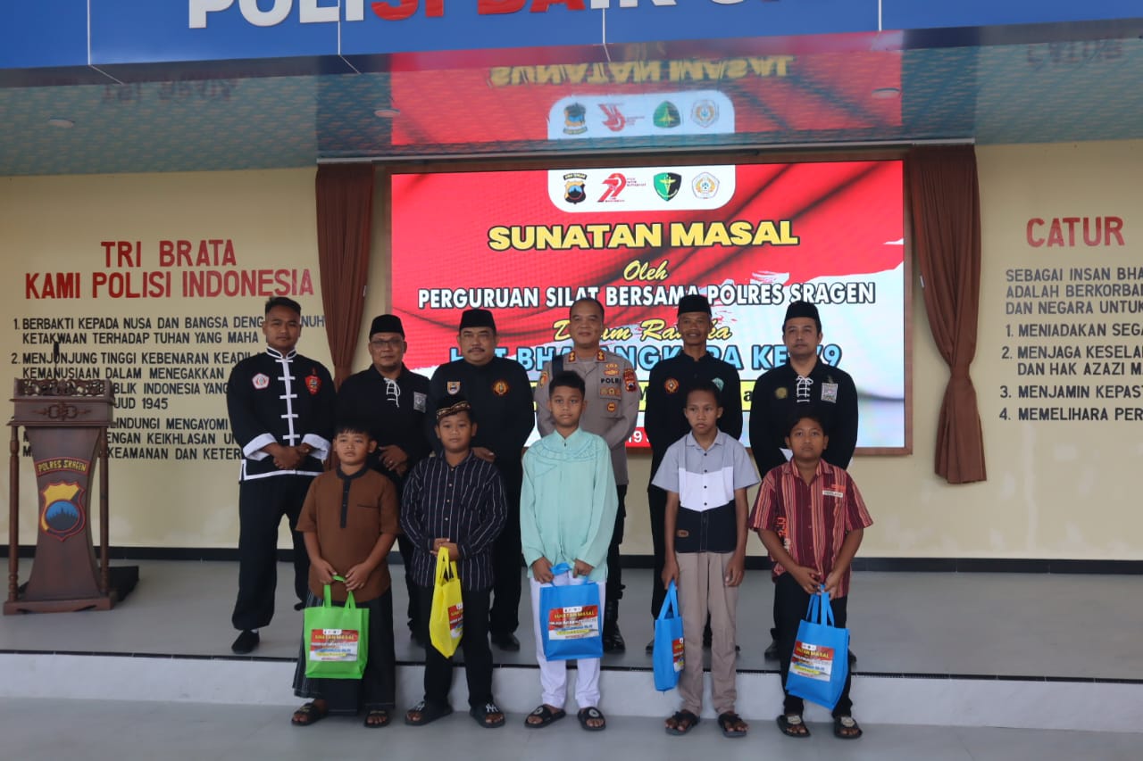 Sragen, Jateng – Demi memperingati dan memeriahkan Hari Bhayangkara ke-79 untuk Polres Sragen, Forum Komunikasi Pencak Silat Sragen (FKPSS) sukses menggelar kegiatan bakti sosial sunatan massal yang berlangsung semarak dan penuh kehangatan.