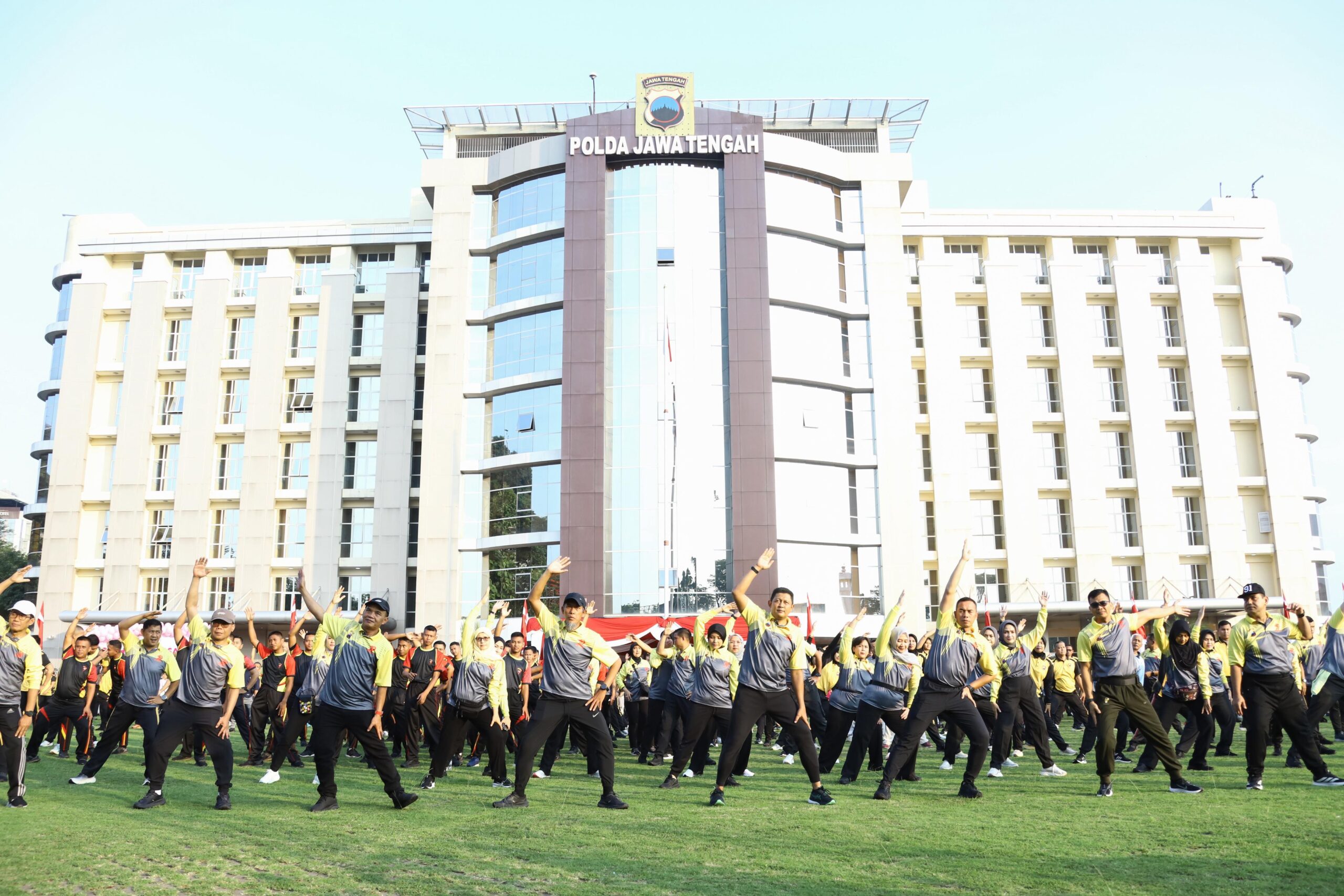 Polda Jateng-Kota Semarang | Dalam rangka menyemarakkan peringatan Hari Bhayangkara ke-79, Polda Jawa Tengah menggelar kegiatan olahraga bersama yang berlangsung meriah pada Selasa, (24/06/2025) pagi. Acara yang berlangsung di Mapolda Jateng ini dihadiri langsung oleh Kapolda Jateng Irjen Pol Ribut Hari Wibowo, para Pejabat Utama (PJU) Polda Jateng, serta tamu undangan dari sejumlah instansi tingkat provinsi Jawa Tengah.