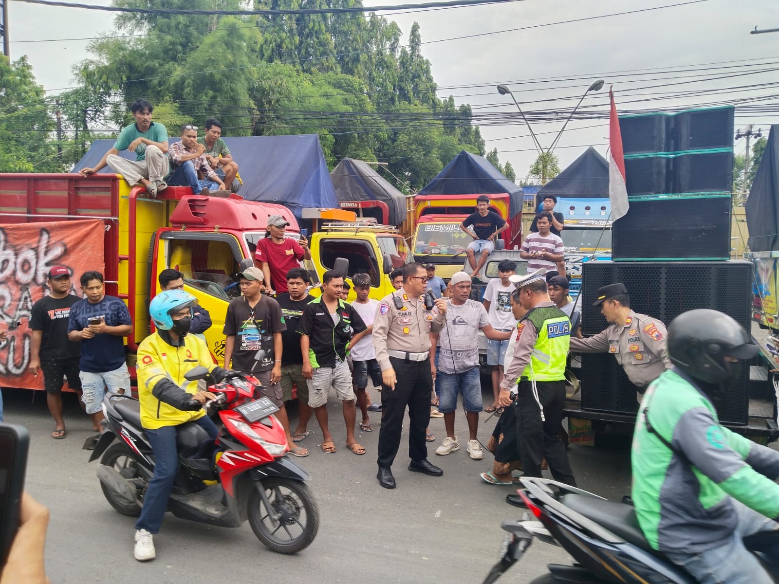 “Polri hadir secara humanis untuk menjaga kelancaran arus lalu lintas dan memastikan aksi berjalan kondusif, Kami imbau kepada seluruh sopir truk agar tidak melakukan aksi mogok di jalan raya yang bisa membahayakan keselamatan pengguna jalan lain. Aspirasi tentu boleh disampaikan, namun harus tetap sesuai aturan dan tidak menimbulkan kerugian publik,” tegas Kombes Pol Artanto.