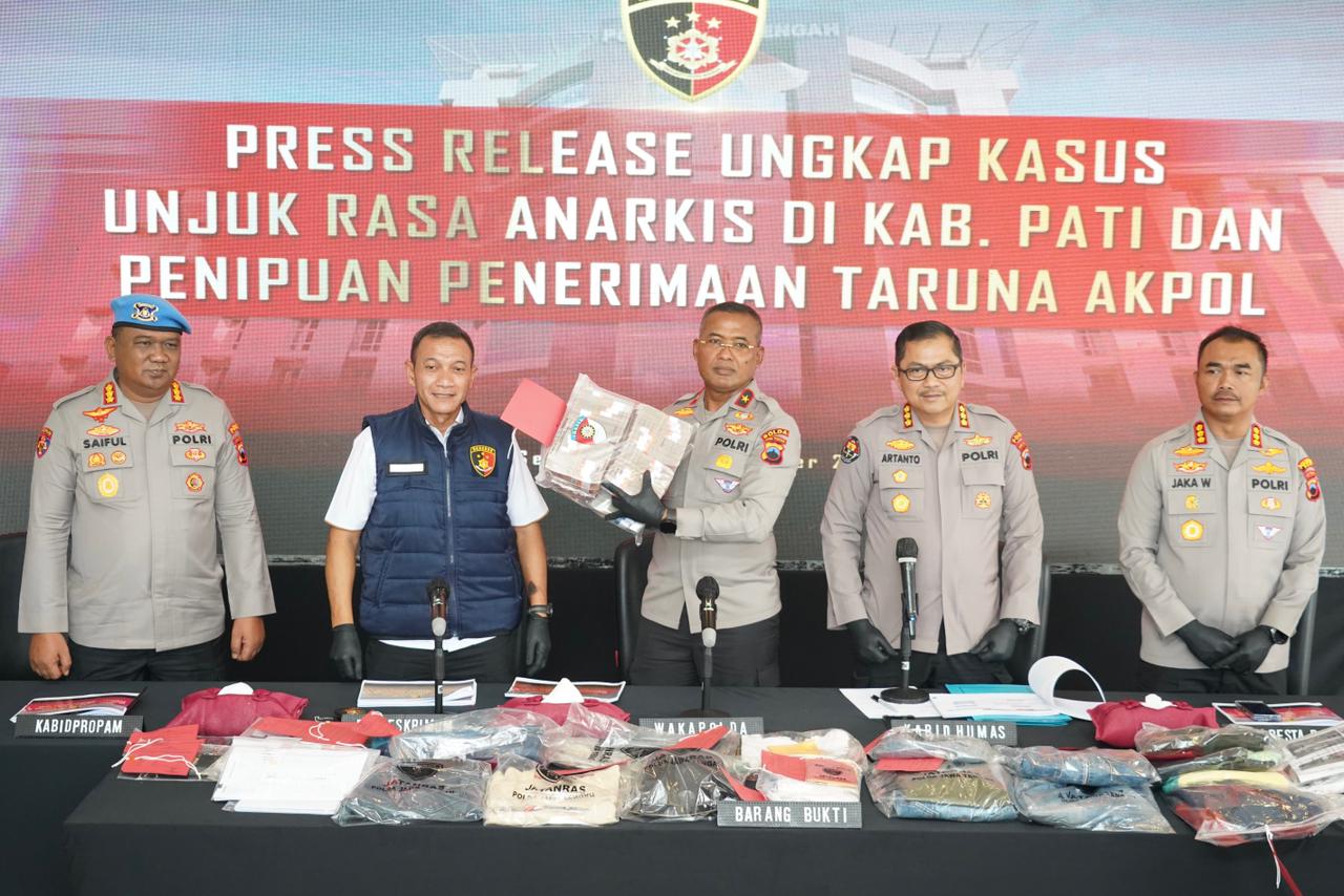 Polda Jateng, Kota Semarang | Kepolisian Daerah Jawa Tengah mengungkap kasus penipuan bermodus penerimaan Taruna Akademi Kepolisian (Akpol) tahun 2025. Pengungkapan ini disampaikan dalam konferensi pers ungkap kasus menonjol yang digelar di lobi Mapolda Jateng, Rabu (5/11/2025) siang, dipimpin Wakapolda Jateng Brigjen Pol Latif Usman, didampingi Dirreskrimum Kombes Pol Dwi Subagio, Kabid Propam Kombes Pol Saiful Anwar, Kabid Humas Kombes Pol Artanto, dan pejabat utama lainnya.