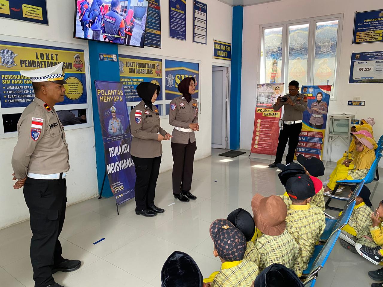 Kunjungan tersebut merupakan bagian dari kegiatan edukatif untuk mengenalkan tugas dan peran kepolisian sejak usia dini.