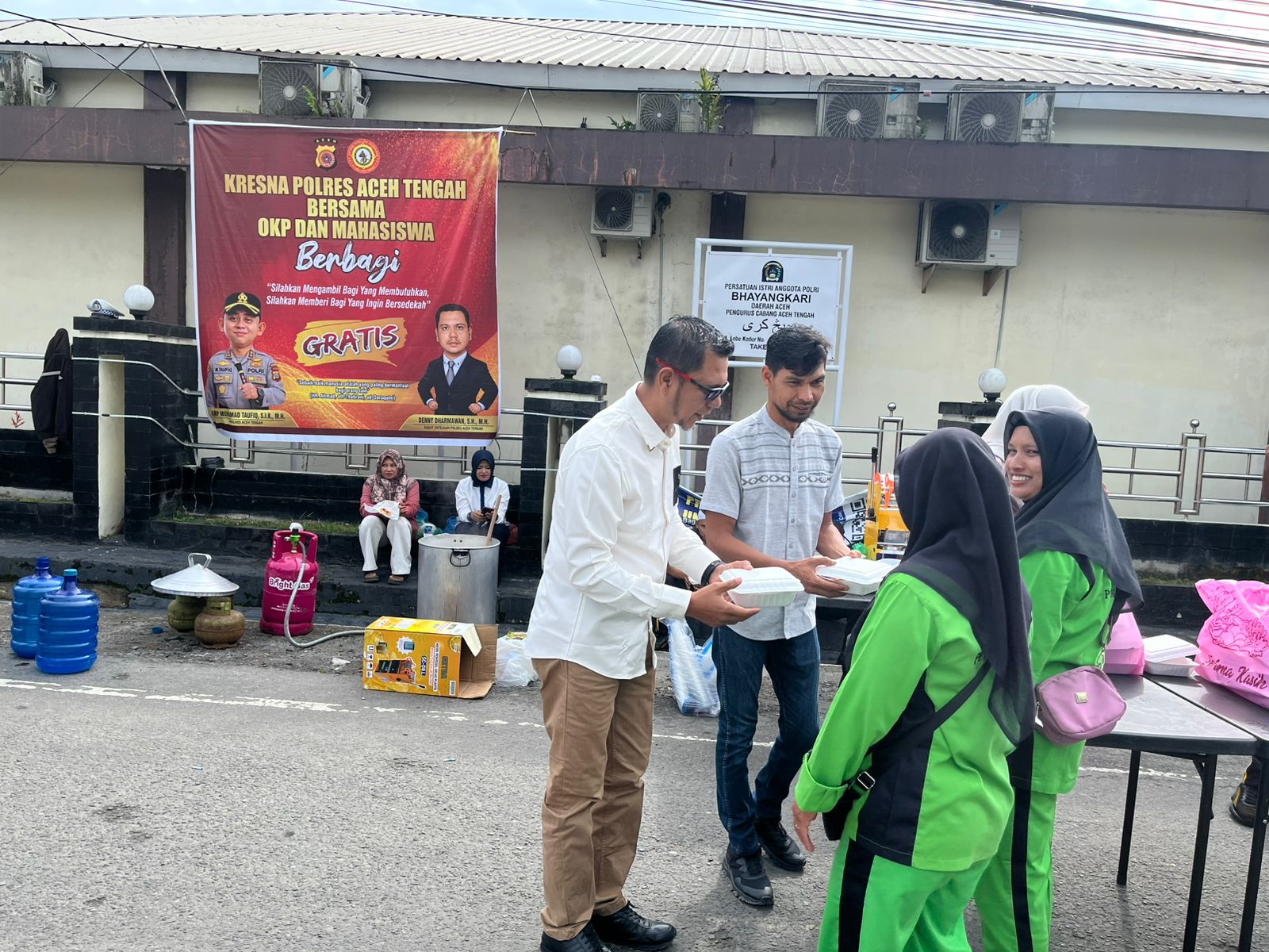 Aceh Tengah ( DerapKeadilan.com ) — Polres Aceh Tengah kembali menggelar kegiatan sosial bertajuk “Jum’at Berbagi” dengan membagikan makanan bergizi berupa bubur susu kacang hijau kepada masyarakat di depan Mako Polres Aceh Tengah, Jumat (17/4/2026) pagi.