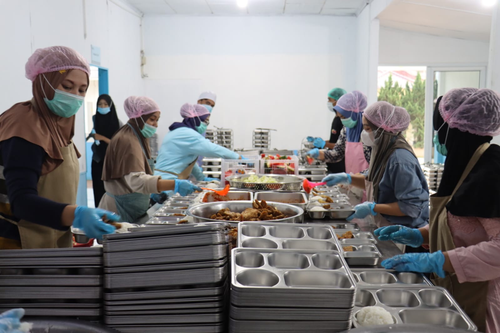 Selain itu, tim juga memastikan penerapan prinsip keamanan pangan sebelum makanan disalurkan. Pengawasan meliputi kontrol suhu, waktu penyajian, serta kebersihan lingkungan dapur sebagai langkah mitigasi risiko, termasuk mencegah potensi keracunan makanan.
