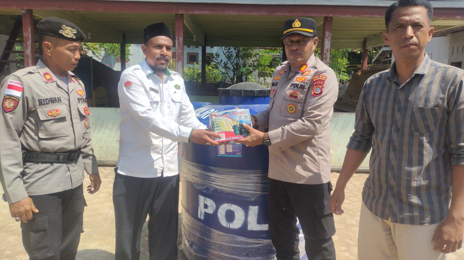 Bantuan tandon air ini diharapkan dapat membantu memenuhi kebutuhan air bersih bagi balai pengajian, sehingga aktivitas keagamaan dan proses belajar mengajar dapat berjalan dengan baik dan lancar,” ujar AKP Faisal.