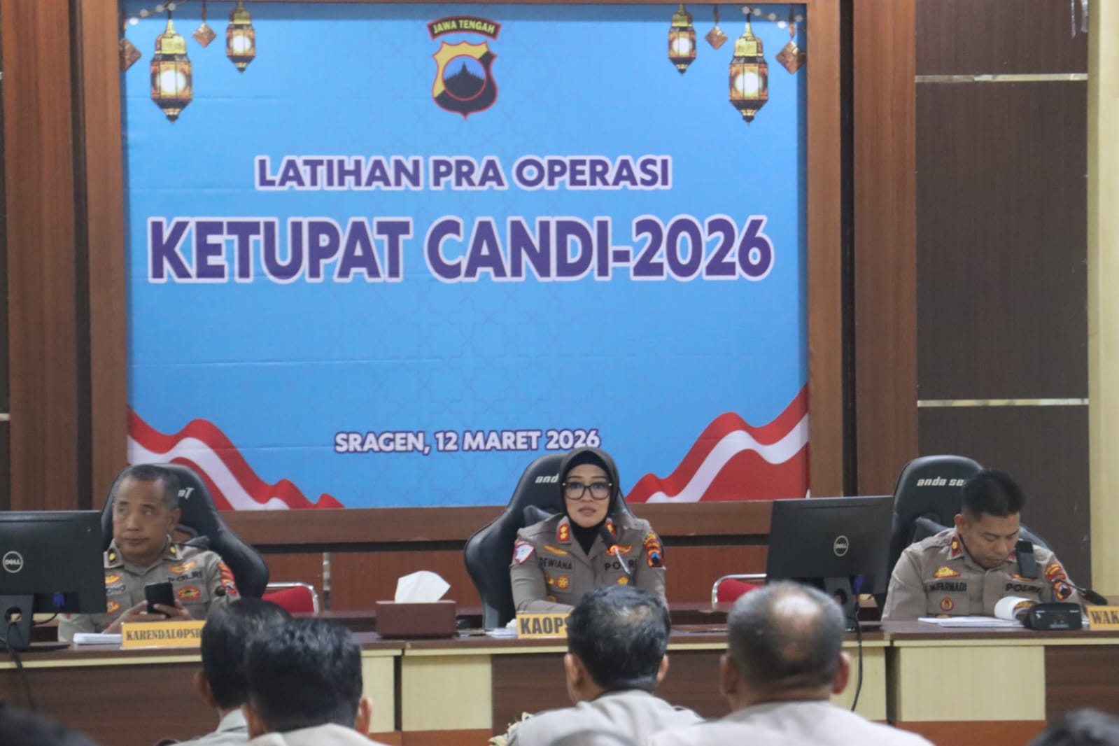 Kapolres Sragen AKBP Dewiana Syamsu Indyasari dalam keterangannya menyampaikan bahwa Lat Pra Ops Ketupat Candi 2026 menjadi langkah penting untuk memastikan seluruh jajaran siap melaksanakan tugas pengamanan Idul Fitri secara maksimal.