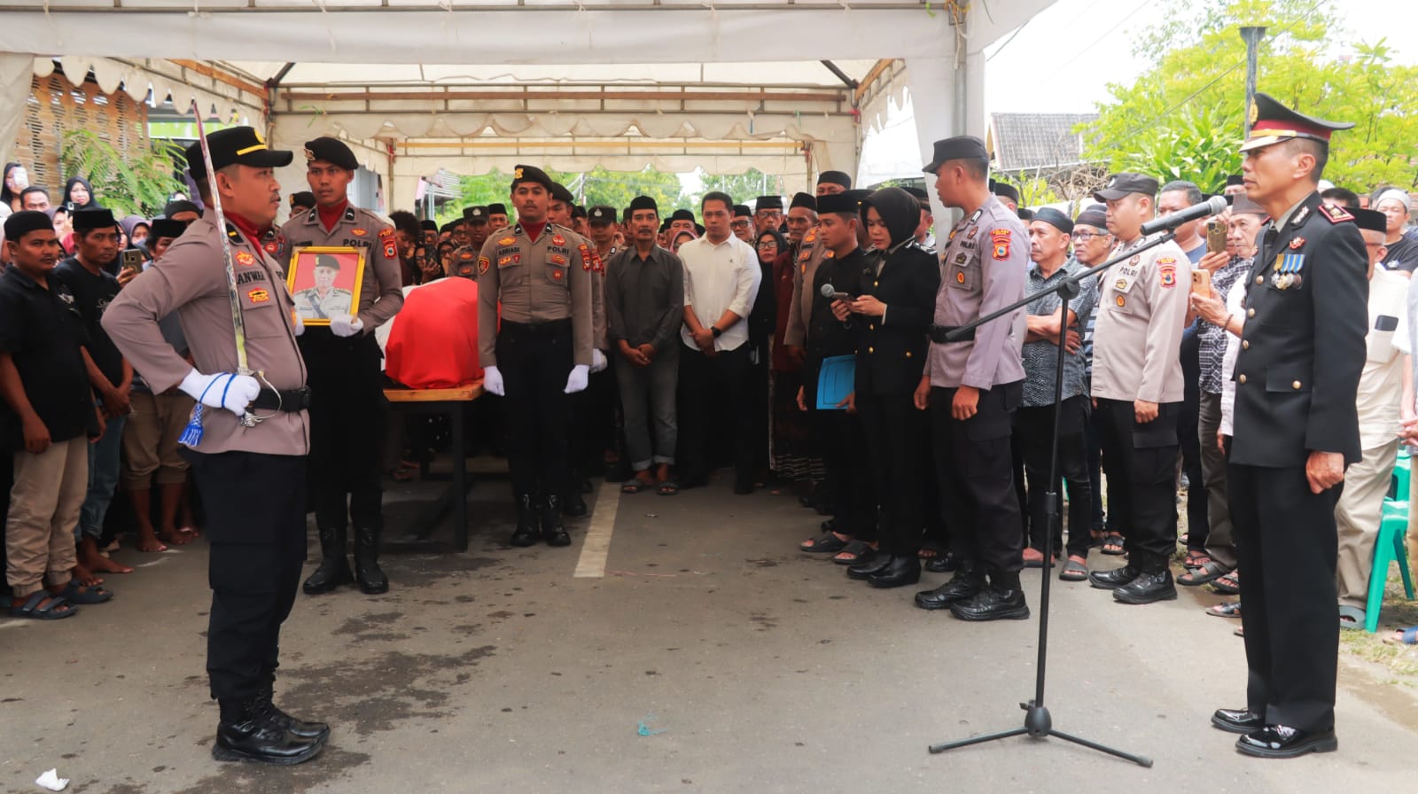 Upacara dihadiri langsung Oleh KAPOLRES Wajo, Akbp MUHAMMAD ROSID RIDHO, S.I.K. didampingi Ketua BHAYANGKARI Cabang Wajo Ny. ANITA ROSID. Serta WAKAPOLRES POLRES Wajo, Kompol H. ANDI SYAMSUL LIFU, S.Sos., MH. Turut hadir Pula Para Pejabat Utama (PJU) Polres Wajo, Personel POLRES Wajo, Pengurus BHAYANGKARI Cabang Wajo, Keluarga Besar, Dan Kerabat Almarhum.