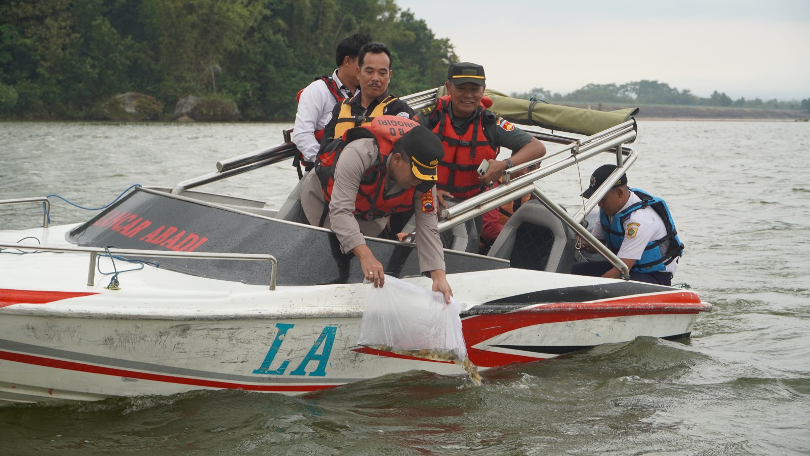 Polres Wonogiri Gelar Aksi Peduli Lingkungan dan Sosial di Waduk Gajah Mungkur, Tebar 10.000 Benih Ikan, Tanam 500 Pohon, dan Bagikan 125 Paket Sembako