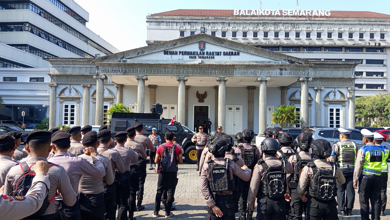 Semarang, 24 Juni 2025 — Kepolisian Resor Kota Besar (Polrestabes) Semarang mengerahkan kekuatan penuh dalam mengamankan jalannya aksi unjuk rasa yang digelar Koalisi Gerakan Anti Korupsi Kota Semarang di halaman Balai Kota Semarang, Selasa (24/6/2025). Aksi tersebut merupakan bentuk protes terhadap dugaan keterlibatan mantan Wali Kota Semarang dalam kasus tindak pidana korupsi.