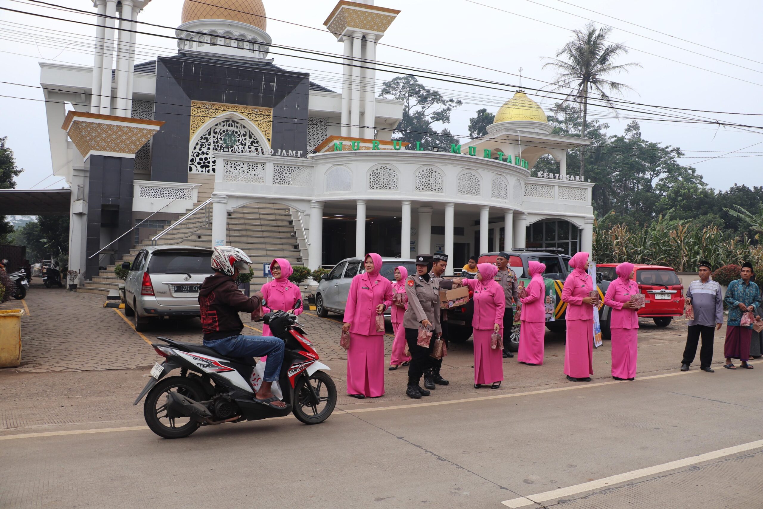 Usai menyerahkan santunan, kegiatan berlanjut dengan pembagian takjil di jalan raya depan Masjid Nurul Muhtadin di Desa Kertosari. Para personel Polsek dan anggota Bhayangkari membagikan paket makanan berbuka kepada para pengendara dan warga yang melintas menjelang waktu berbuka puasa.