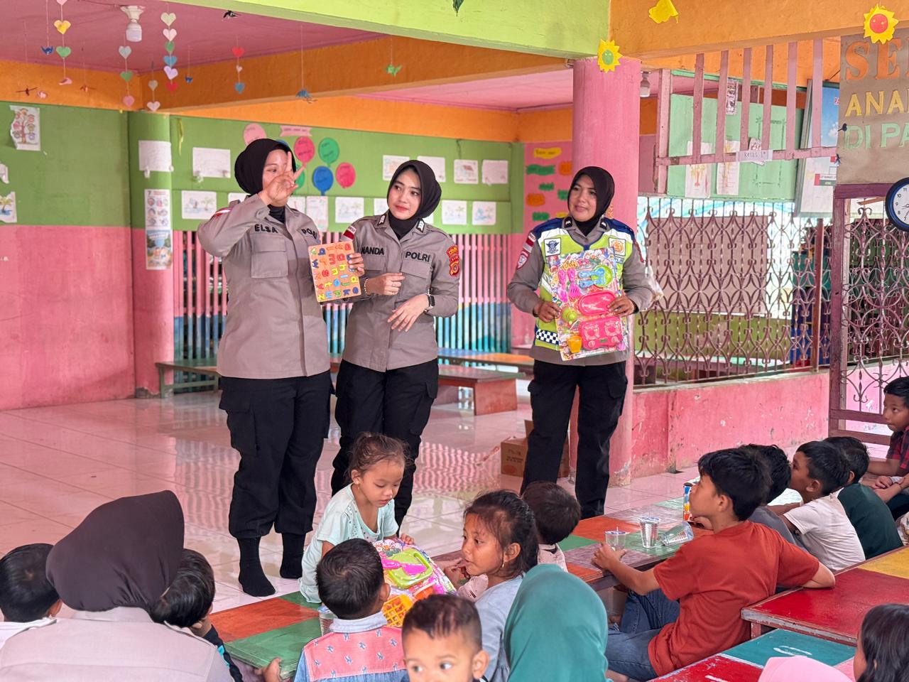 Suasana haru dan kebahagiaan tampak jelas saat anak-anak mengikuti kegiatan bermain dan belajar bersama Polwan. Tawa dan senyum mereka menjadi penanda bahwa kehadiran Polri benar-benar membawa ketenangan dan harapan baru.