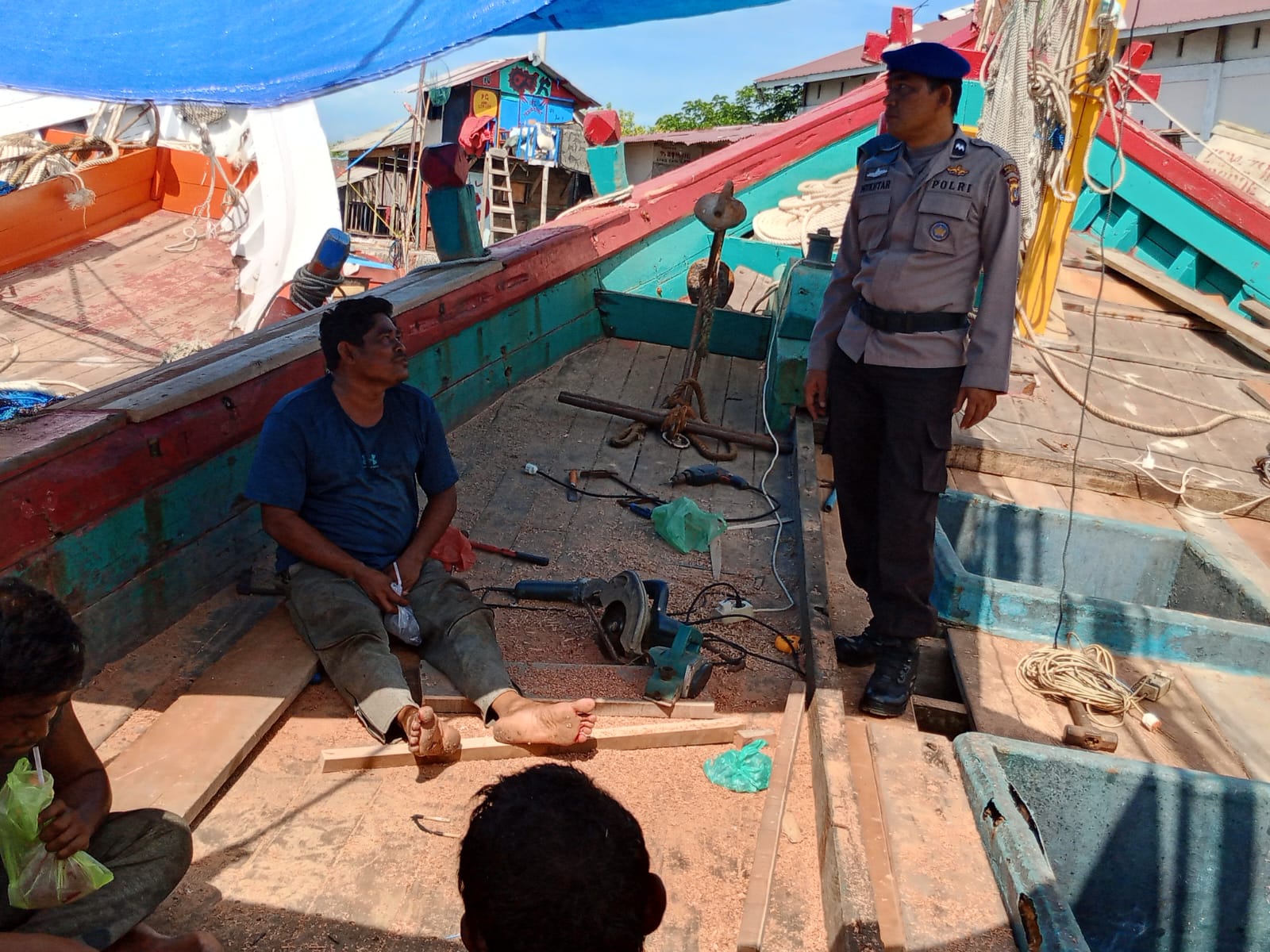 Kehadiran personel Sat Pol Airud di tengah masyarakat pun mendapat respons positif dari para nelayan yang tengah bersiap melaut maupun melakukan aktivitas bongkar muat hasil tangkapan.