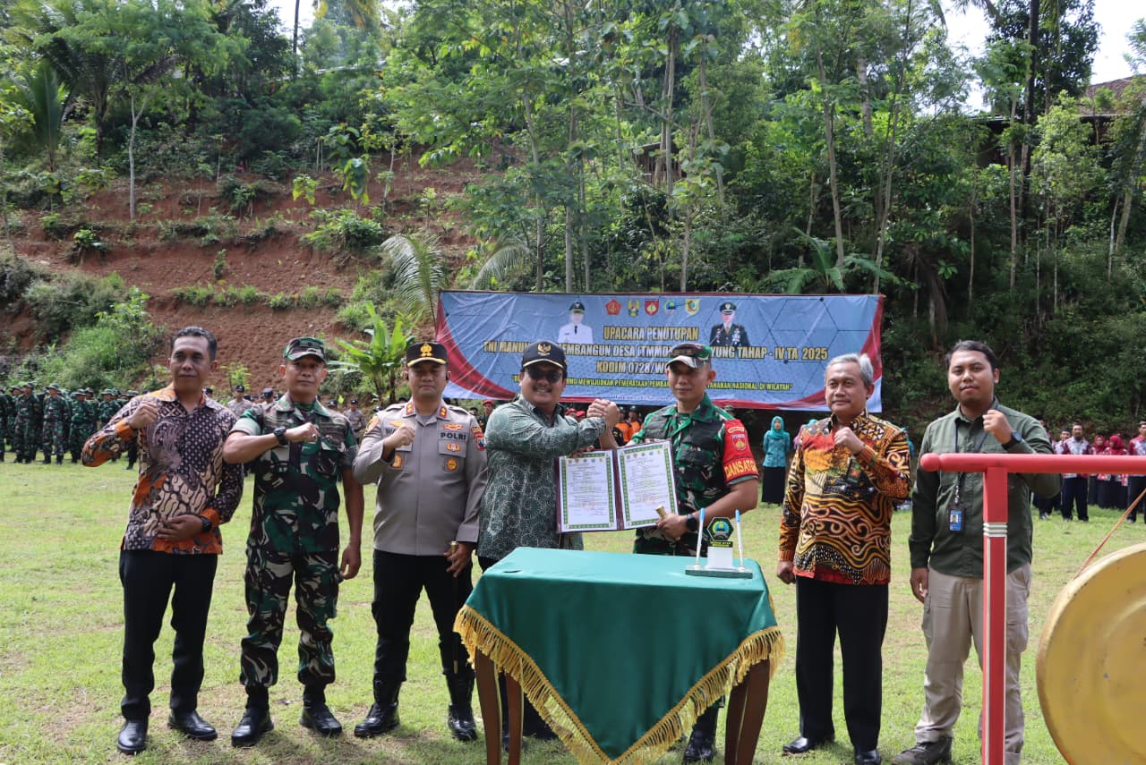 Wonogiri, Jateng – Kolaborasi antara TNI, Polri, dan Pemerintah Kabupaten Wonogiri kembali membuahkan hasil nyata. Pada Kamis (6/11/2025), bertempat di Lapangan Dusun Gondang, Desa Ngambarsari, Kecamatan Karangtengah, digelar Upacara Penutupan TNI Manunggal Membangun Desa (TMMD) Sengkuyung Tahap IV Tahun 2025 oleh Kodim 0728/Wonogiri.