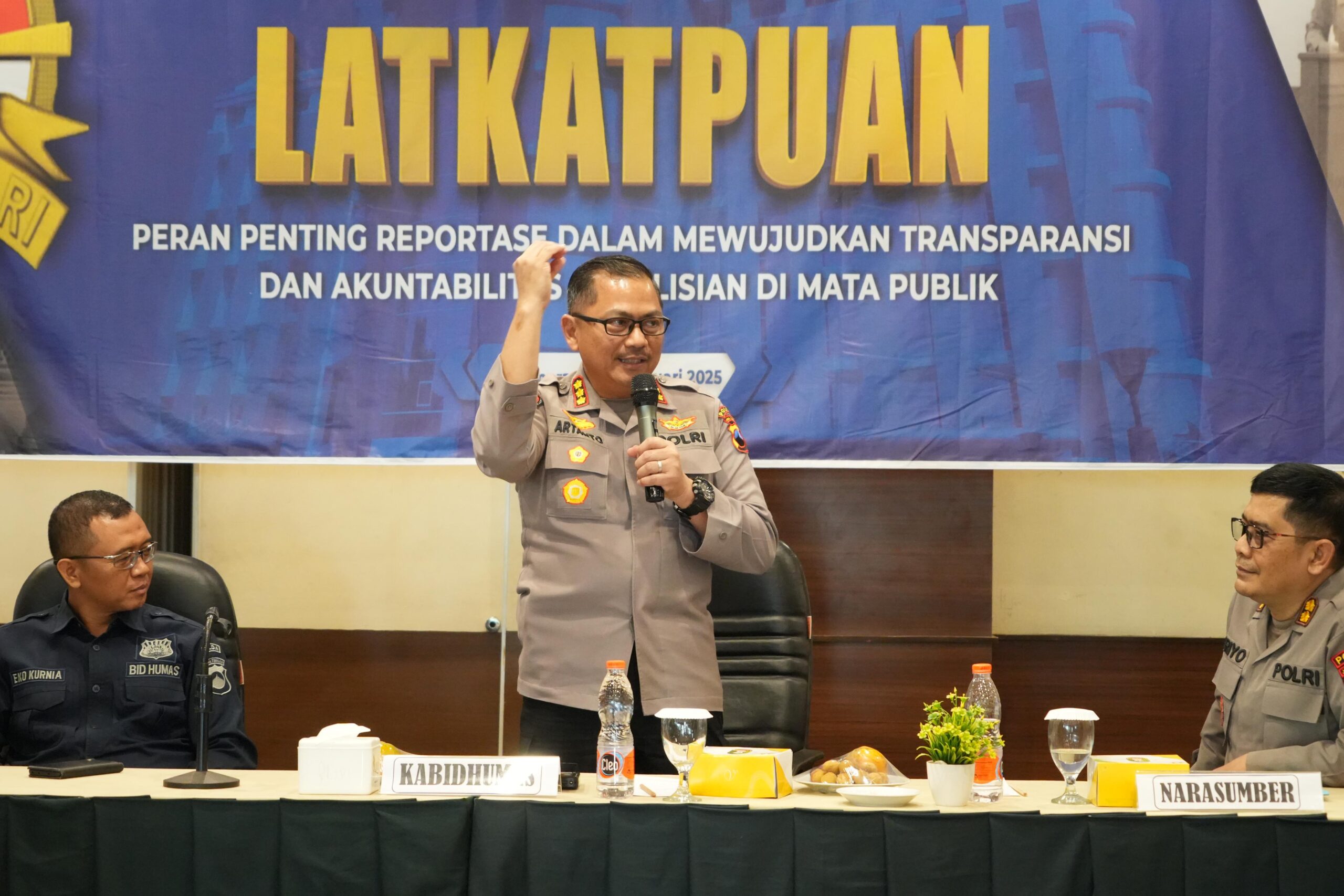 Dalam sambutannya, Kombes Pol Artanto menegaskan bahwa kemampuan kehumasan yang baik sangat diperlukan agar setiap informasi yang disampaikan kepada masyarakat dapat diterima dengan jelas dan kredibel.