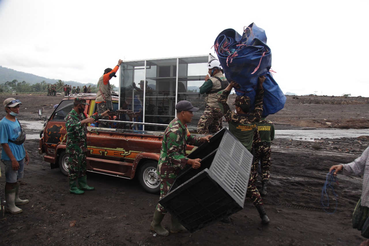Untuk memperkuat respons di lapangan, Prajurit Divif 2 Kostrad mendirikan tenda peleton, dapur lapangan, serta memperkuat penyekatan di zona terdampak. Evakuasi barang berharga dan warga dilakukan secara terkoordinasi, didukung penuh oleh personel Koramil 0821-14/Pronojiwo yang sejak awal turut melakukan penyisiran dan pengamanan wilayah.
