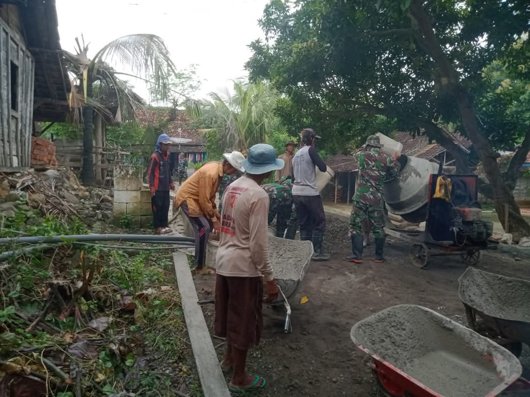 Rembang – Anggota Kodim 0720/Rembang bersama masyarakat Desa Woro, Kecamatan Kragan, Kabupaten Rembang, bergotong royong melaksanakan kegiatan karya bakti dalam rangka program Tentara Manunggal Membangun Desa (TMMD) Sengkuyung tahap I tahun anggaran 2025, pada Senin (24/2/25).