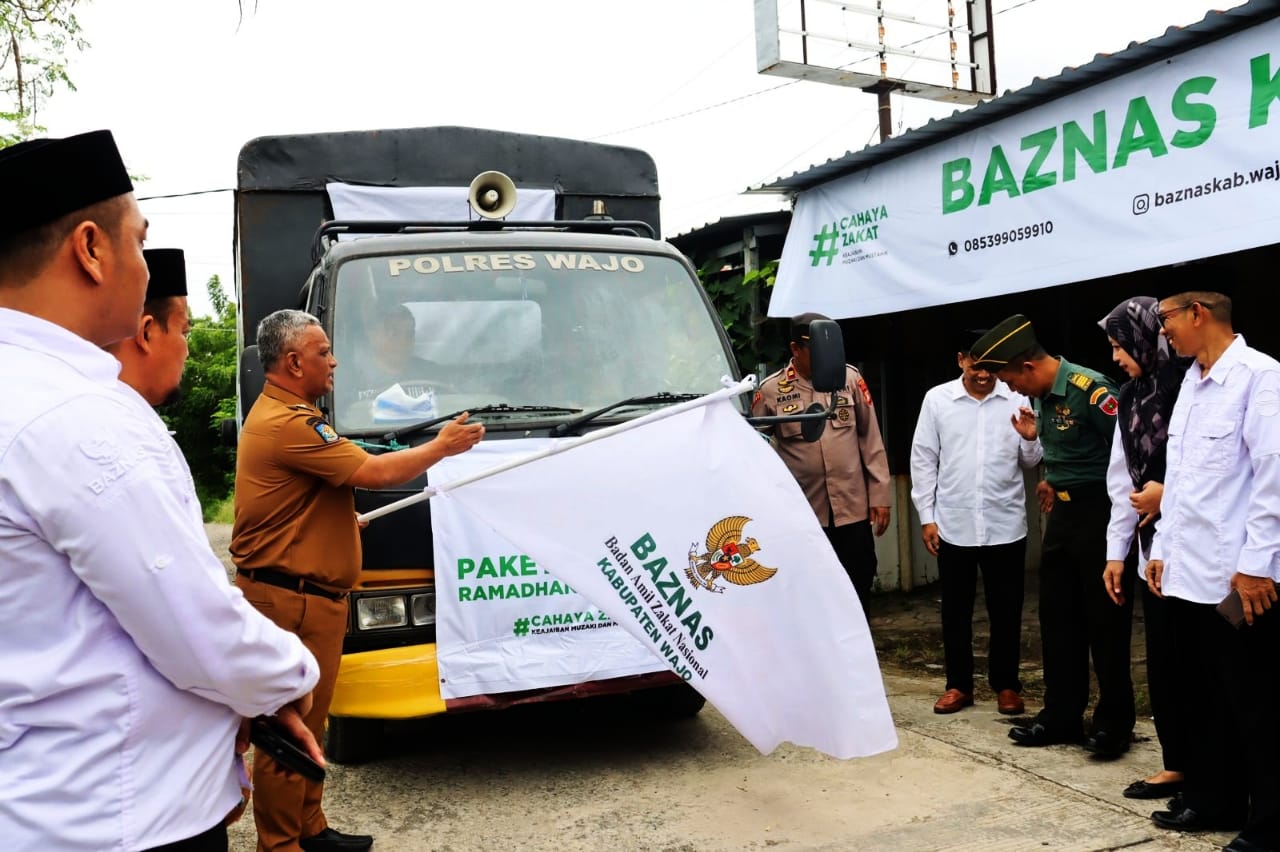 menghadiri Dan melepas Penyaluran Paket Ramadhan Merdeka di Kantor Badan Amil Zakat Nasional (BAZNAS) Kabupaten Wajo. Senin, 17 Maret 2025.